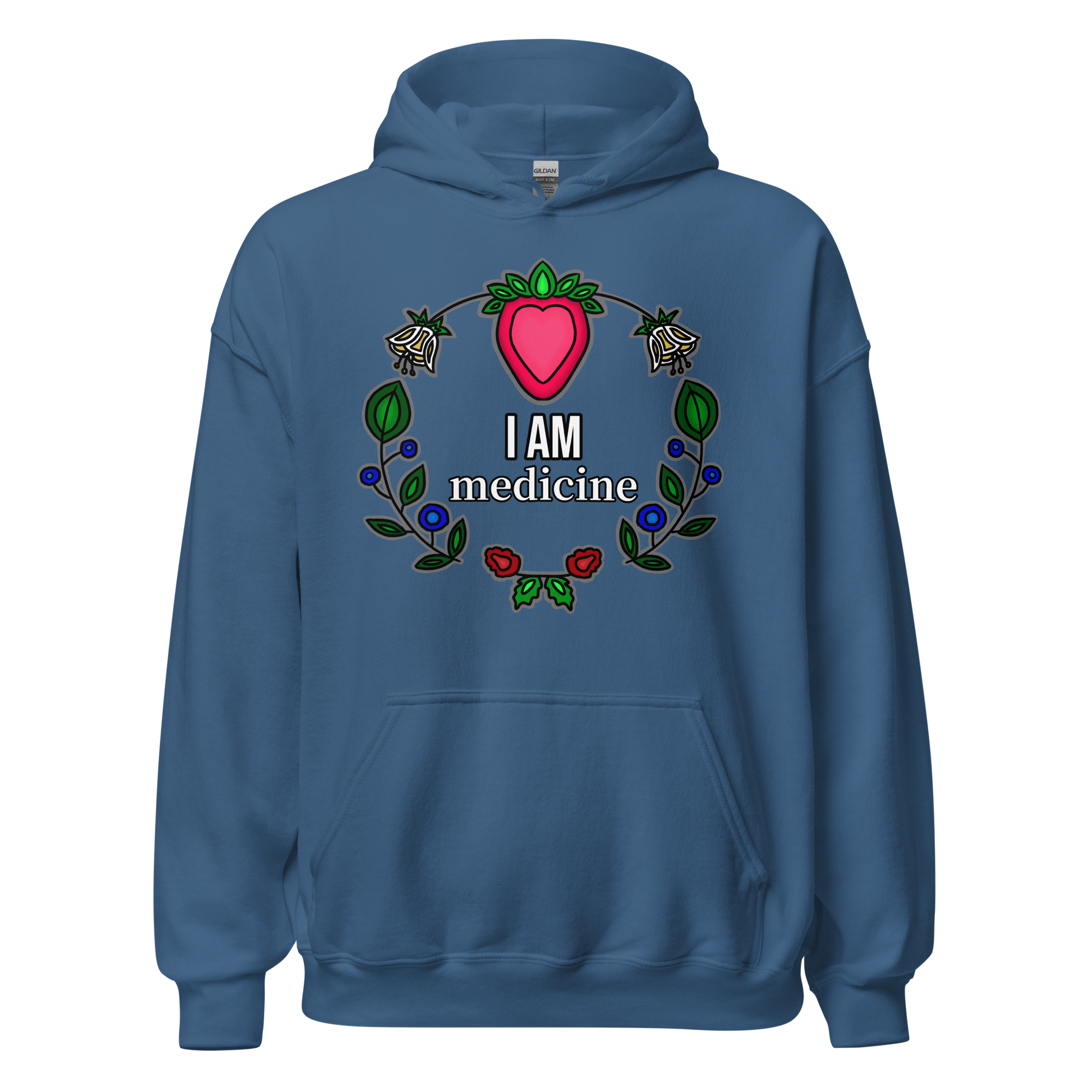 We are all medicine. Positive affirmation for the soul, in the form of a comfortable and casual sweater. The perfect hoodie to rock with your moccs!